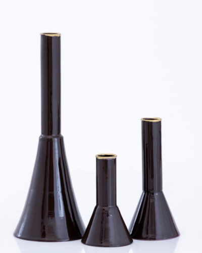 CS0263 & CS0269 CS0270 - Burgundy, Black And Beige Funnel Candlestick Set
