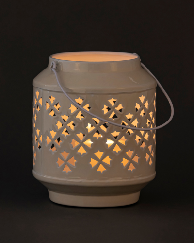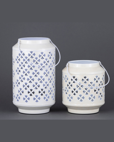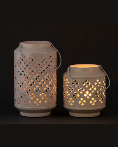 These beautifully crafted lanterns feature intricate star-shaped cutouts that create enchanting patterns of light and shadow when illuminated. Available in two sizes, tall and medium, they complement each other perfectly and can be displayed as a pair or styled separately. Their elegant design makes them versatile for both indoor and outdoor décor, adding warmth and charm to any setting. Each lantern comes with a sturdy handle for easy carrying or hanging, making them practical as well as decorative. Ideal for festive celebrations, weddings, or cozy home styling, these lanterns bring a touch of elegance and radiance wherever they are placed.